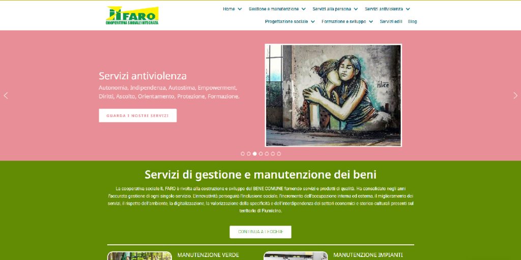 Per suddividere in maniera chiara le molte attività che la cooperativa svolge, ho scelto colori distintivi e identificativi, che possano guidare l’utente tra le varie sezioni.