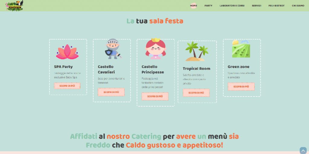 Il sito è molto giocoso e allegro, ricco di immagini e colori, pensato per divertire fin da subito.